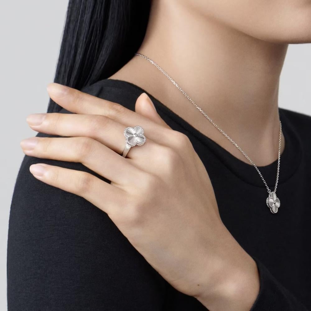 اطلب الآن خاتم فان كليف بوردة المصنوعة من الفضة الخالص عيار 925 وتميّز بإطلالة استثنائية من مجوهرات ميار.