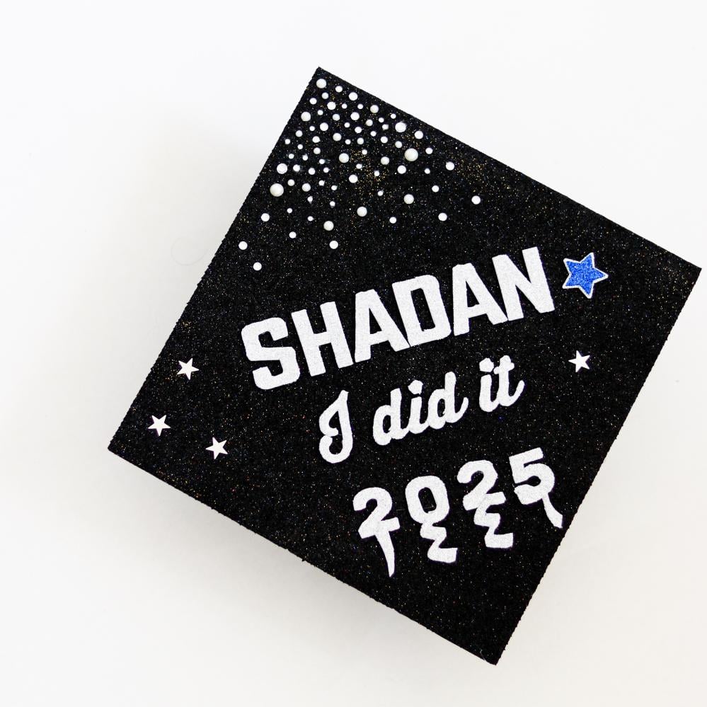 احتفل بيوم تخرجك بلمسة من التميز مع قبعة التخرج بالشريطة اللامعة بالقليتر.