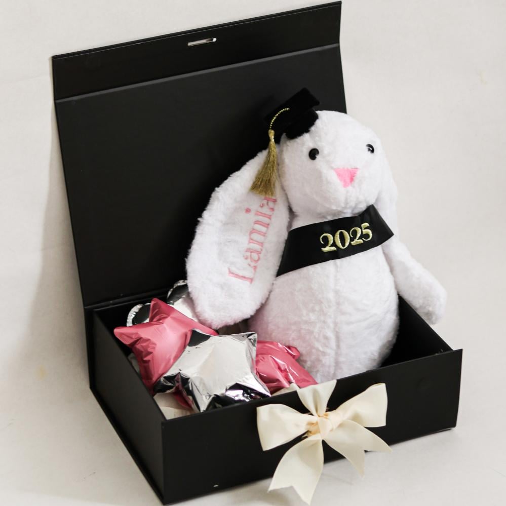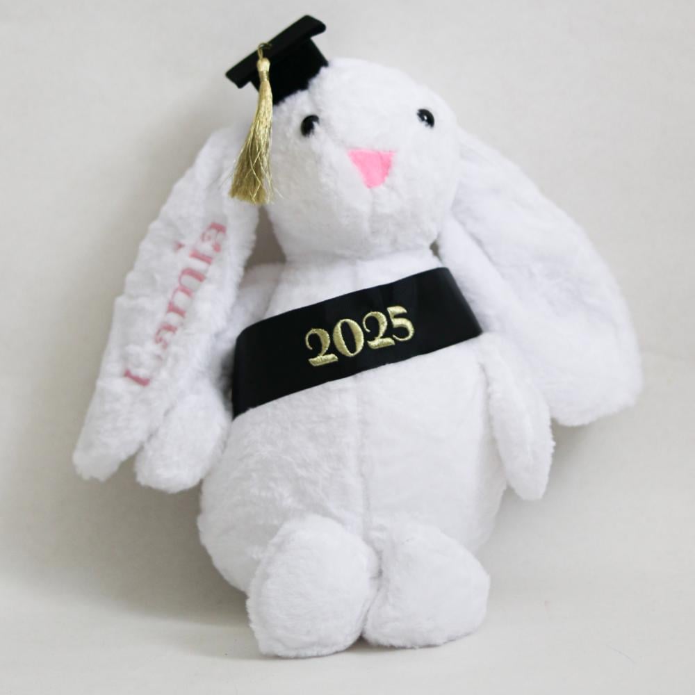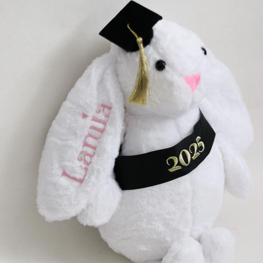 دبدوب التخرج مطرز بجودة عالية يحمل اسمك أو اسم من تحب، مزين بقبعة ووشاح التخرج ليكون هدية مثالية للاحتفال بهذه اللحظة الخاصة.