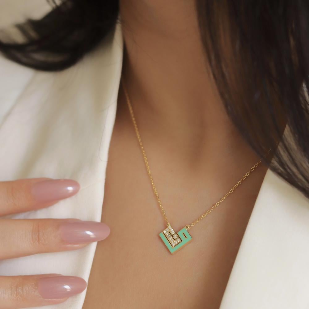 925 Sterling Silver Two Letters Kufi Enamel Necklace